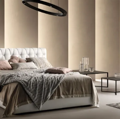 Se desideri letti matrimoniali imbottiti, eccoti il modello Arcadia Iris in tessuto per completare la camera da letto.
