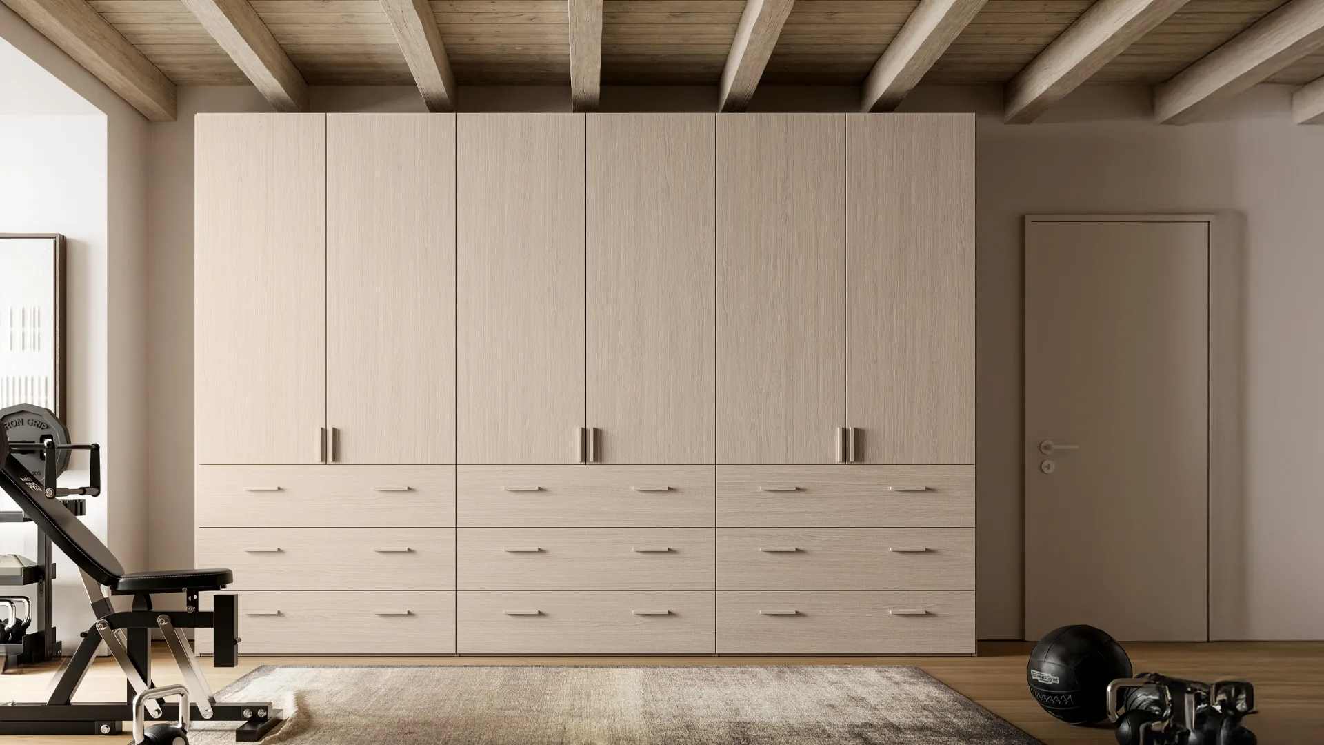 Se vuoi armadiature a muro con ante battenti, clicca e scopri l'armadio Liscia Pratico Battente 07 di SantaLucia in melaminico.