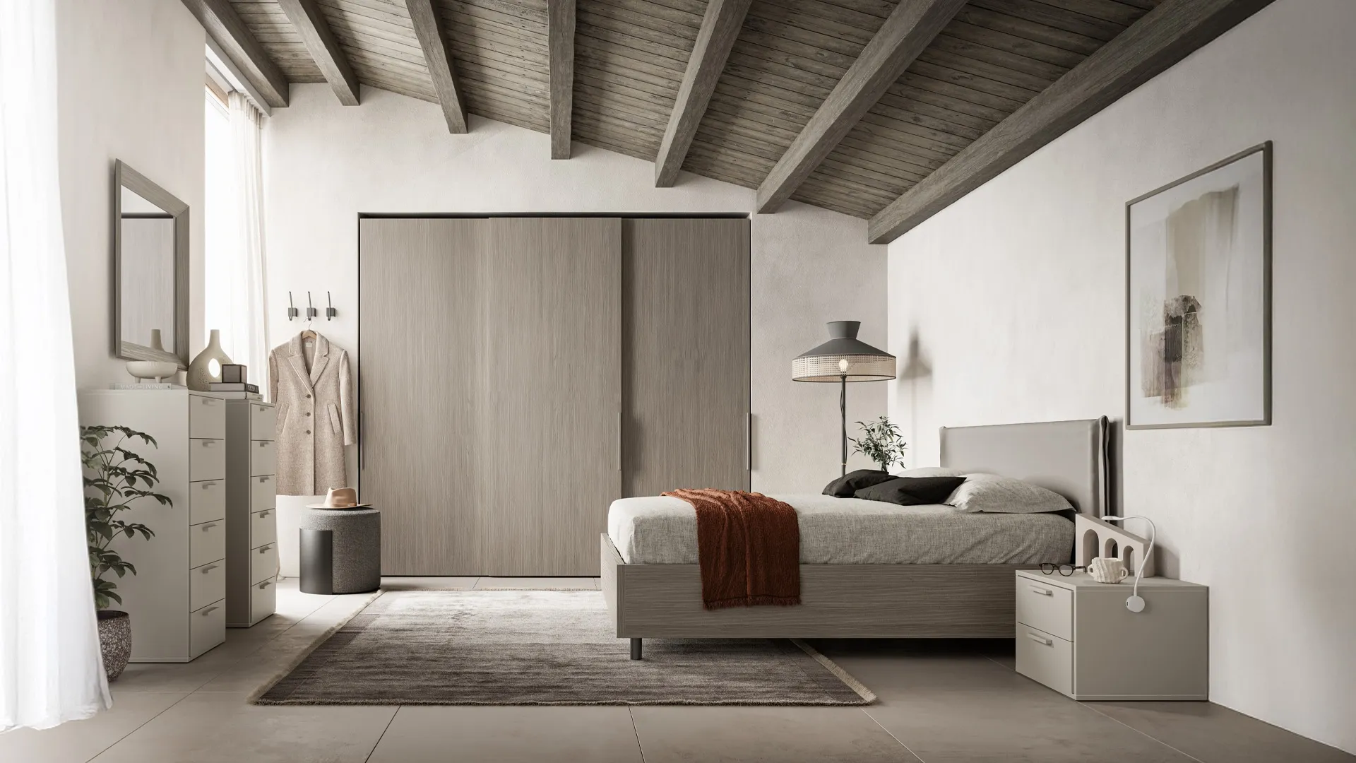 La zona del riposo include anche i Comodini: contenitori strategici che danno modo di ordinare oggetti e contare su piani per appoggiare per vari utilizzi. Gruppo Notte Kros di SantaLucia: contattaci e scopri di più sulle nostre composizioni e arreda la camera come l'hai sempre immaginata. Con i nostri gruppi notte moderni della firma SantaLucia, specialista dell’Arredamento Casa per la zona del riposo, potrai creare la zona notte che hai sempre voluto. Valorizza i tuoi interni scegliendo composizioni di arredi abbinati o ricrea inediti accostamenti di stile e tonalità contando sul catalogo di mobili ed elementi accessori per la zona del riposo che proponiamo, come il modello in melaminico mostrato in foto, anche realizzabili su misura.