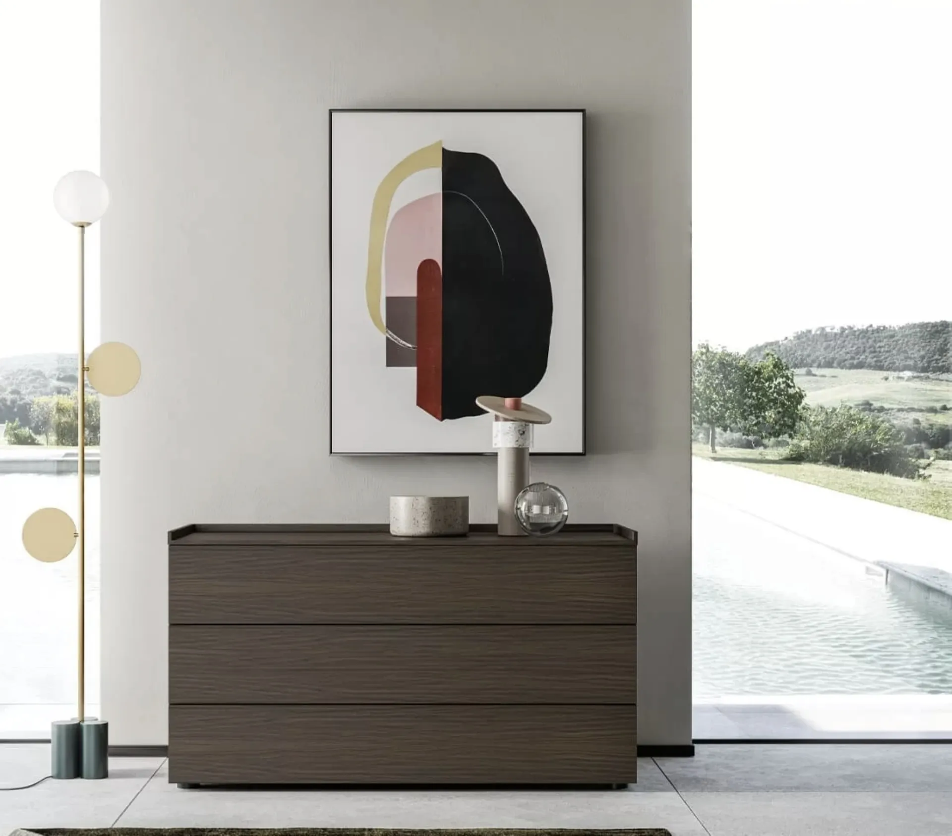 Una ricca gamma di mobili con cassetti SantaLucia: i comodini moderni in melaminico, come Sistema Ventidue Comò Matwood, sono tra le proposte più originali.