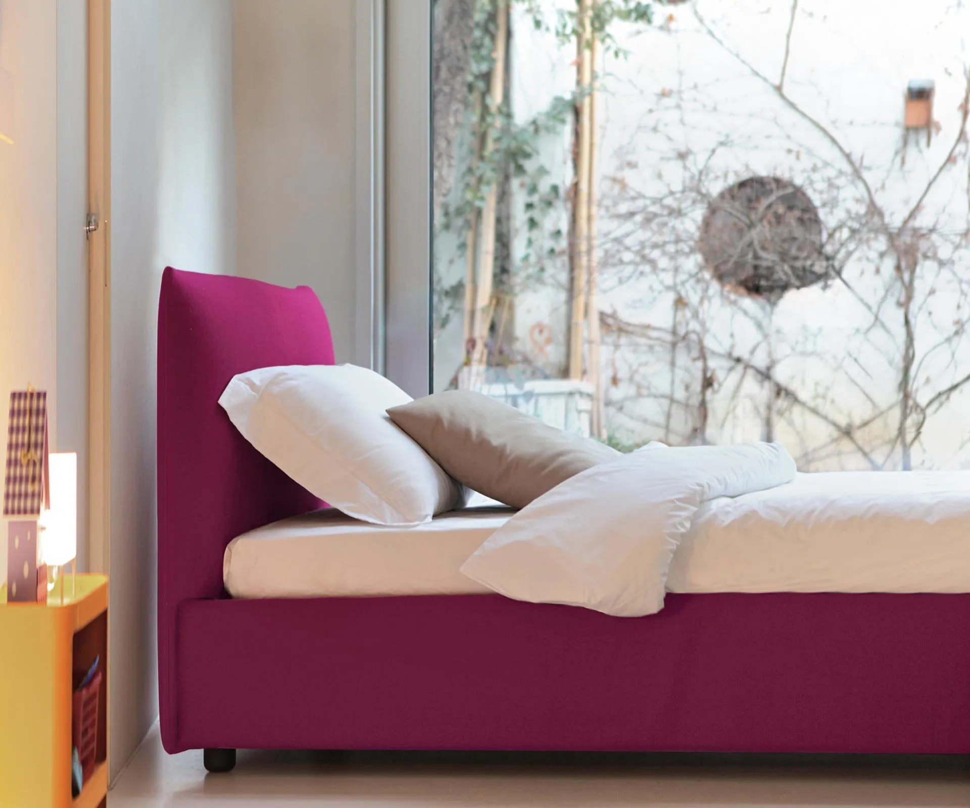 Se desideri letti singoli con contenitore, eccoti il modello Bridge in tessuto per valorizzare la cameretta.
