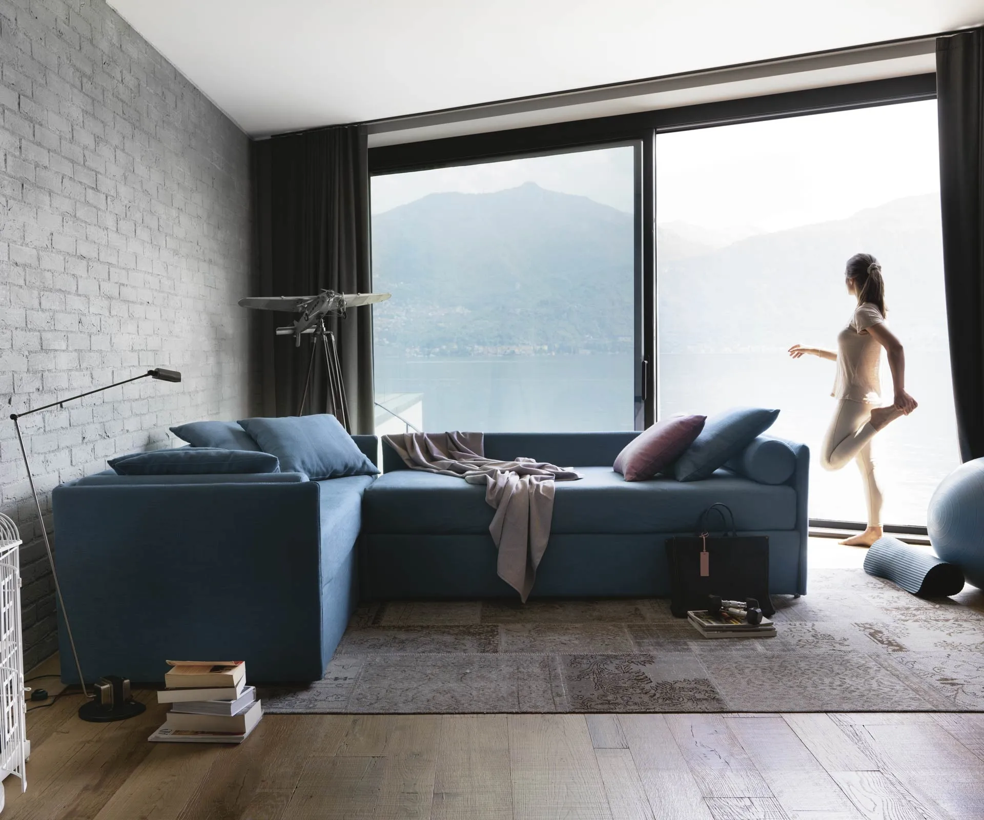 Il letto singolo Space in tessuto in foto, tra i modelli imbottiti moderni di Noctis, è pensato per garantire il relax totale.
