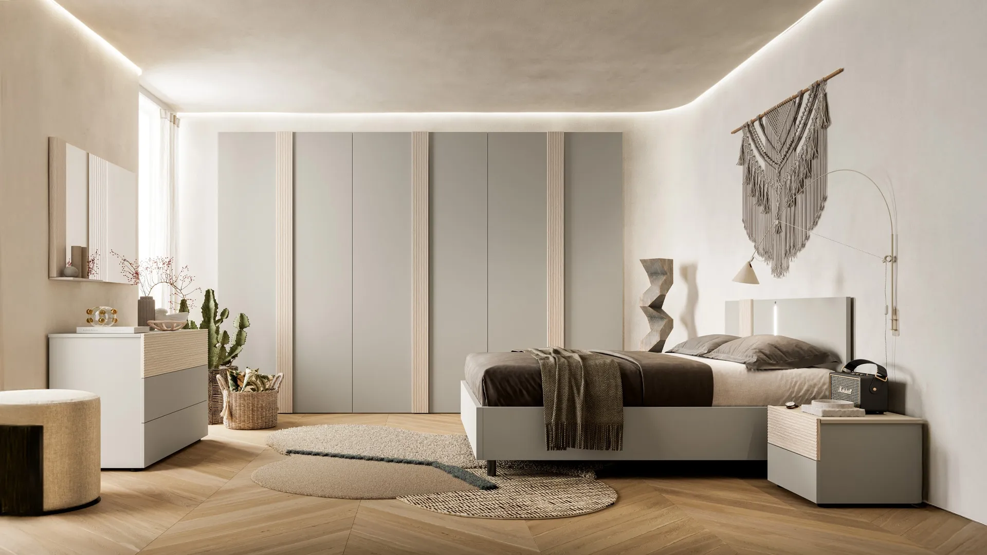 Vuoi ridefinire la camera da letto? Ecco qui il letto in melaminico Abro di SantaLucia per spazi moderni.