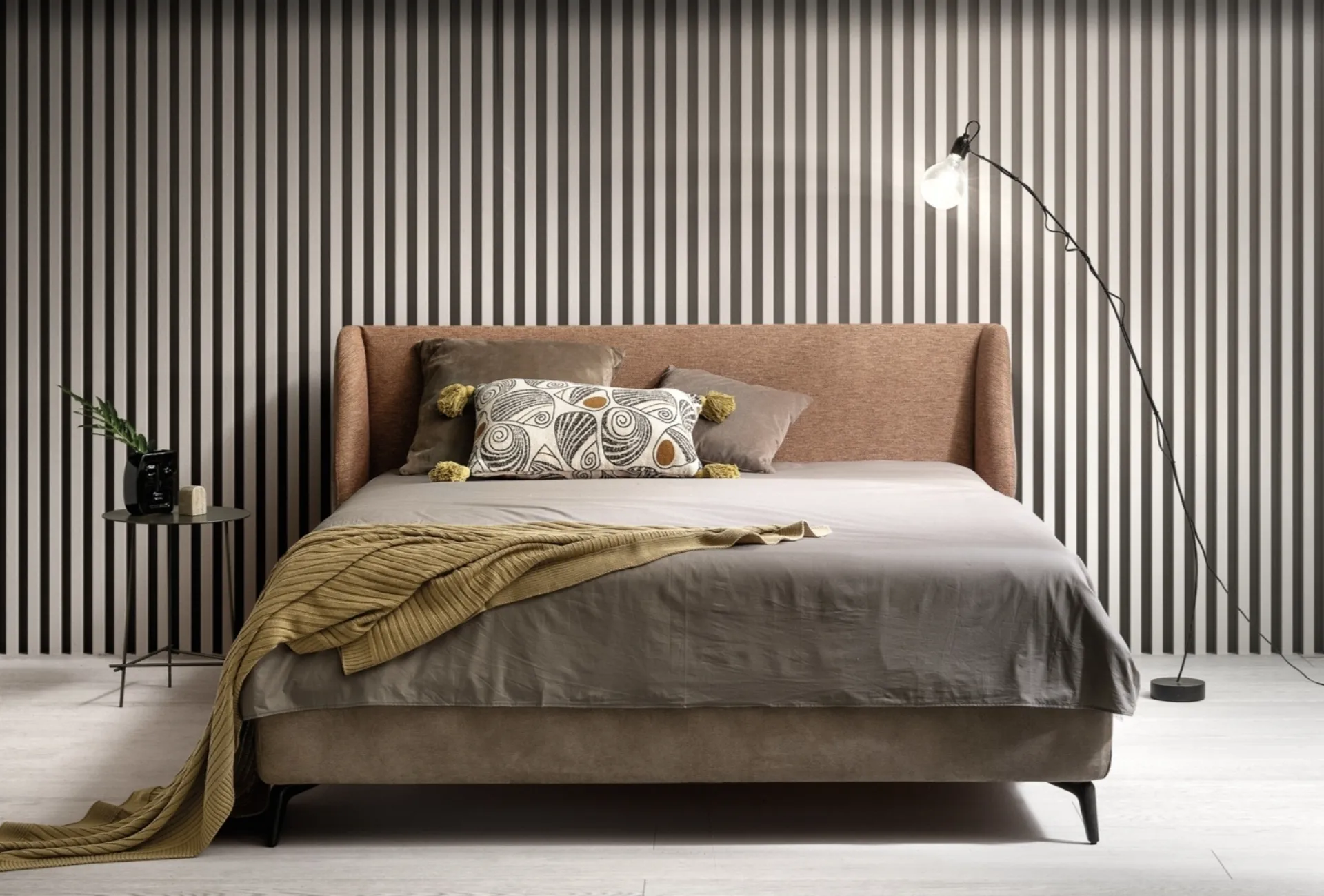 Vuoi attualizzare la zona notte? Ecco qui il letto in tessuto Hug di Bside per spazi moderni.