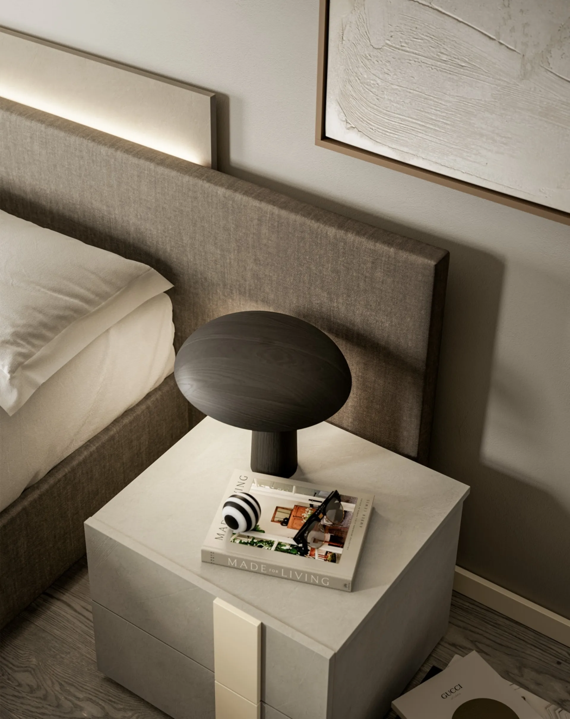 Vuoi organizzare la zona notte? Ti presentiamo il letto in tessuto Mari di SantaLucia per spazi moderni.