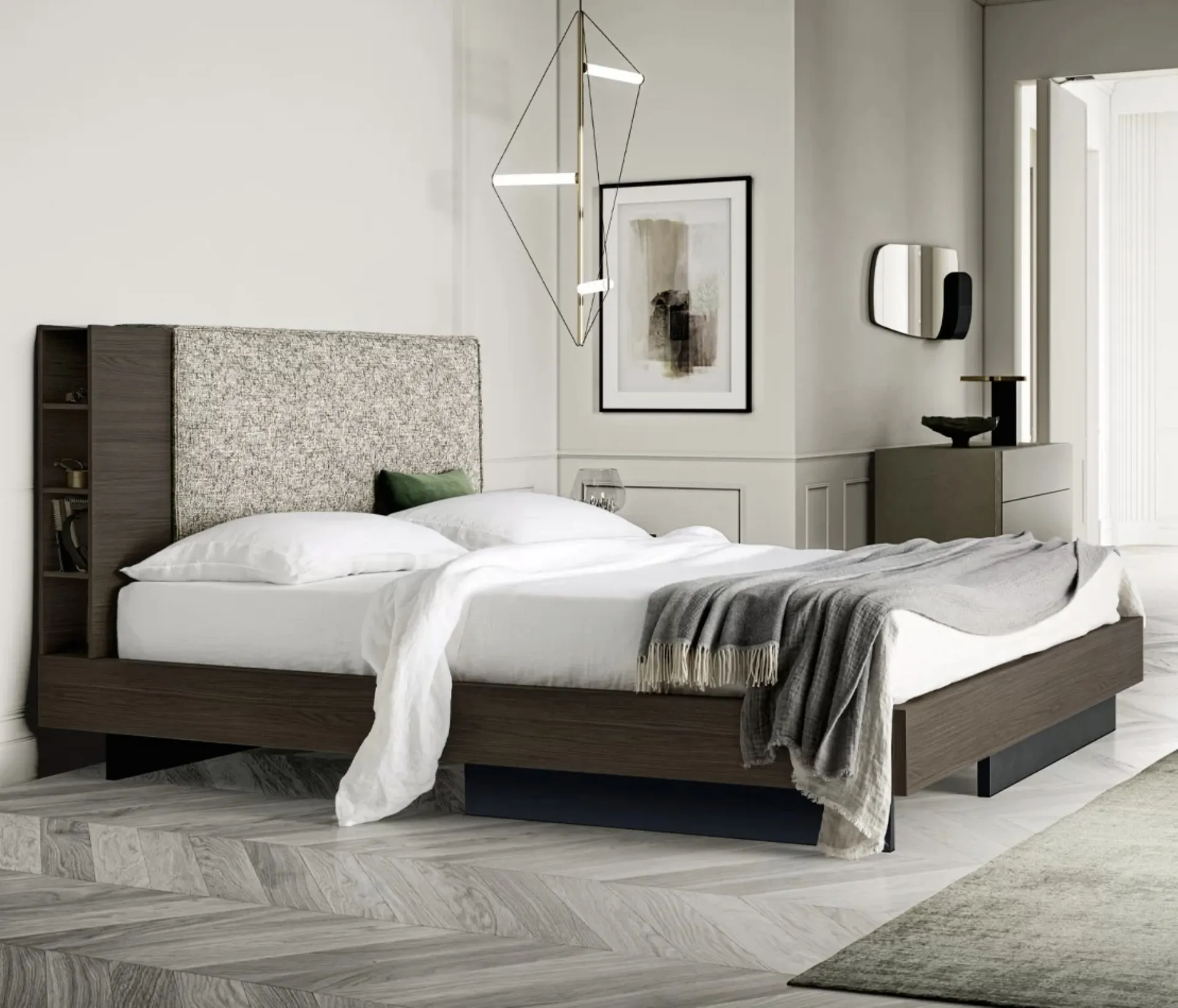 Questa è una soluzione di grande gusto, che porta con sé tutta la qualità garantita dalla pluriennale competenza del brand nel settore. Contattaci e scopri di più sulla nostra linea di Letti matrimoniali imbottiti: ottimizza la tua camera da letto con le nostre composizioni. Per ultimare alla perfezione l'arredo della tua camera da letto è indispensabile valutare gli accostamenti del letto con armadi e comodini, elementi accessori e quant'altro: se vuoi mobili moderni, il modello nella fotografia fa per te. Il Letto in melaminico e tessuto Plinio di SantaLucia è uno dei prodotti più originali della marca, sinonimo di resistenza negli anni, qualità dei materiali e uno stile unico.