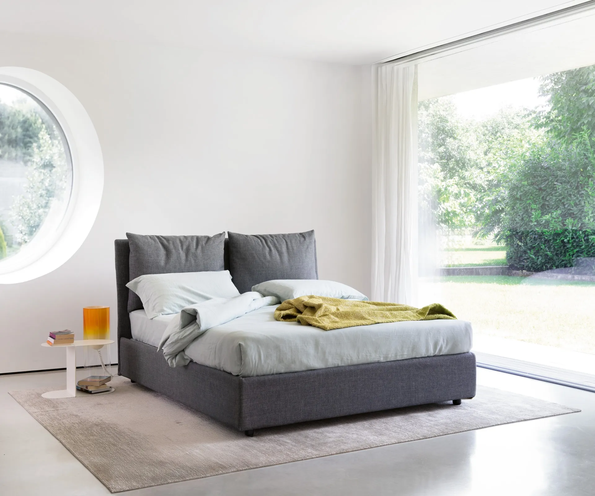 Se desideri letti matrimoniali con contenitore, ti presentiamo il modello Tangos in tessuto per completare la zona notte.