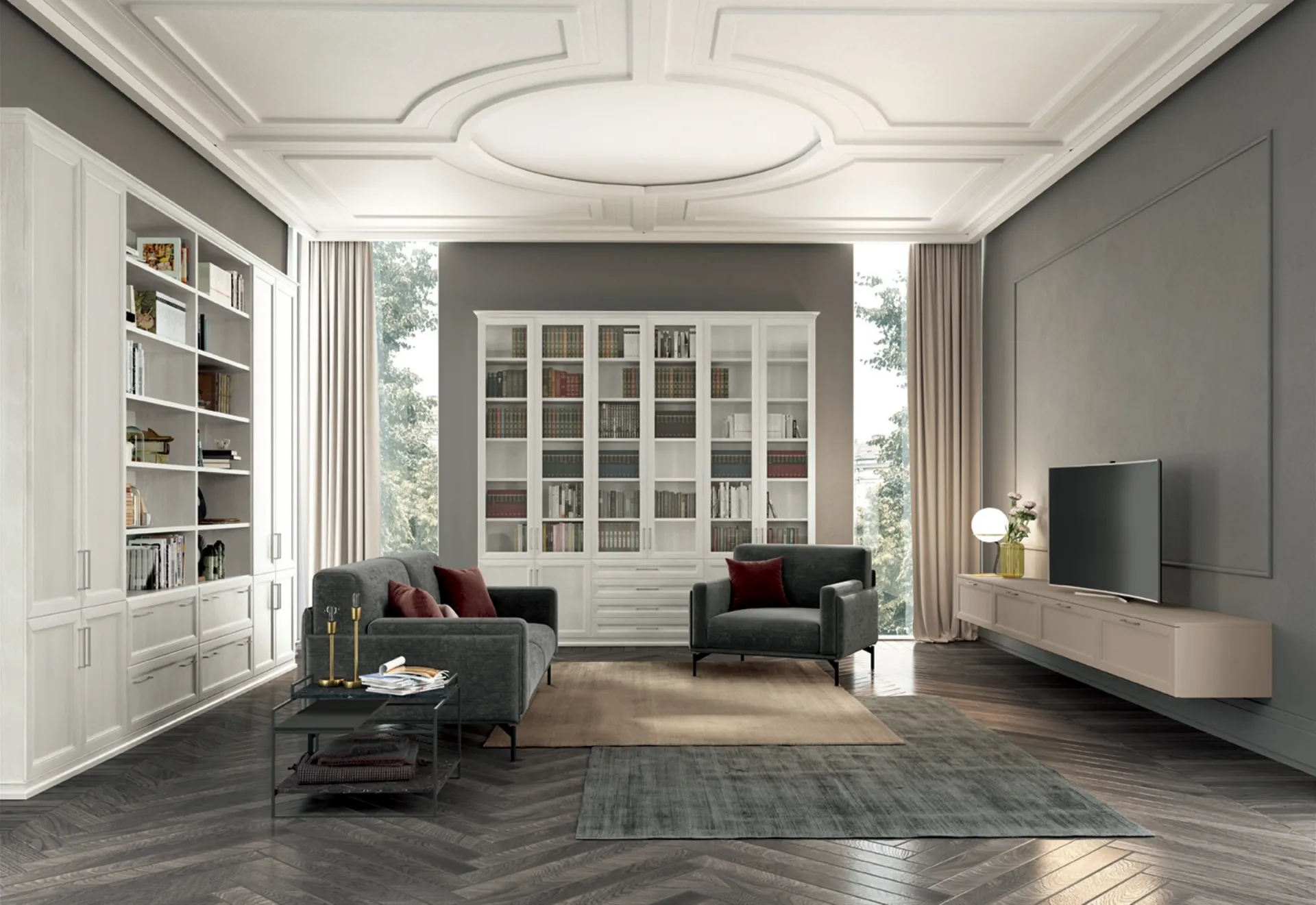 Librerie a muro iper funzionali per stanze classiche: ottieni informazioni sul modello Arcadia AS006 della marca Colombini Casa!