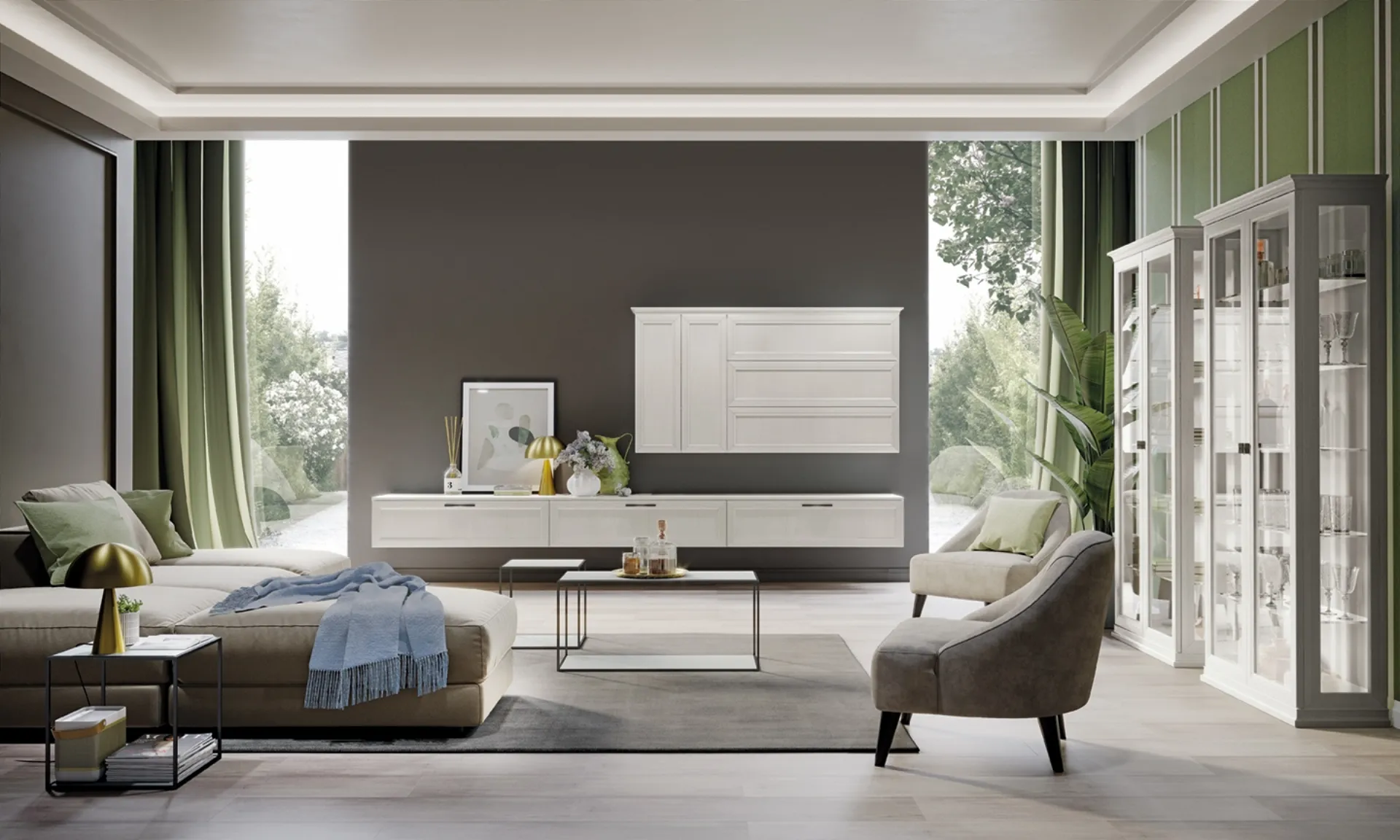 Pareti attrezzate e pensili Colombini Casa: clicca e scopri il modello Arcadia AS013 e potrai valorizzare stanze classiche di ogni genere.