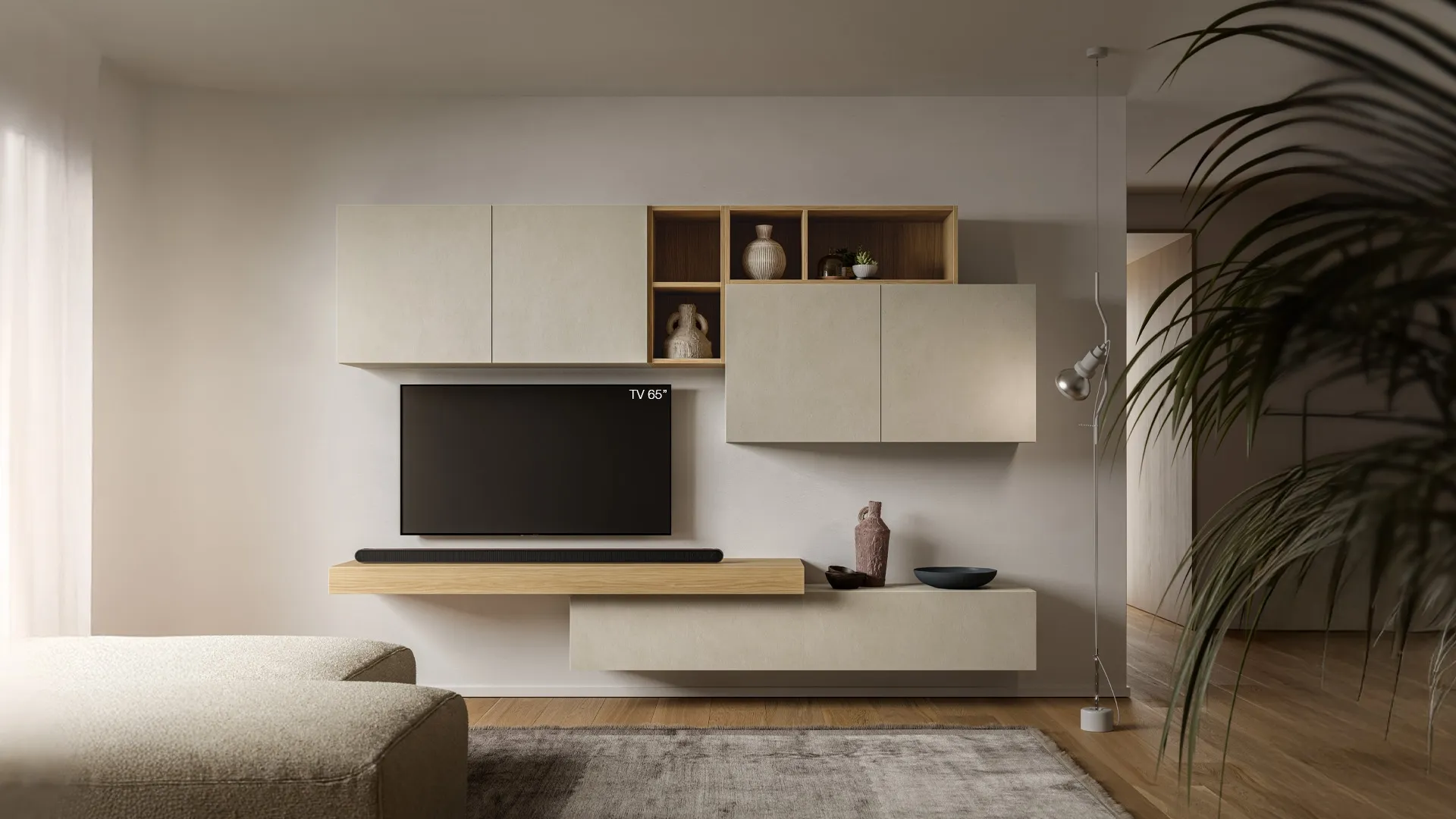 Se vuoi ultimare un living pratico e operativo dalle linee moderne, ecco a te la parete attrezzata Pratico PTG418 SantaLucia.