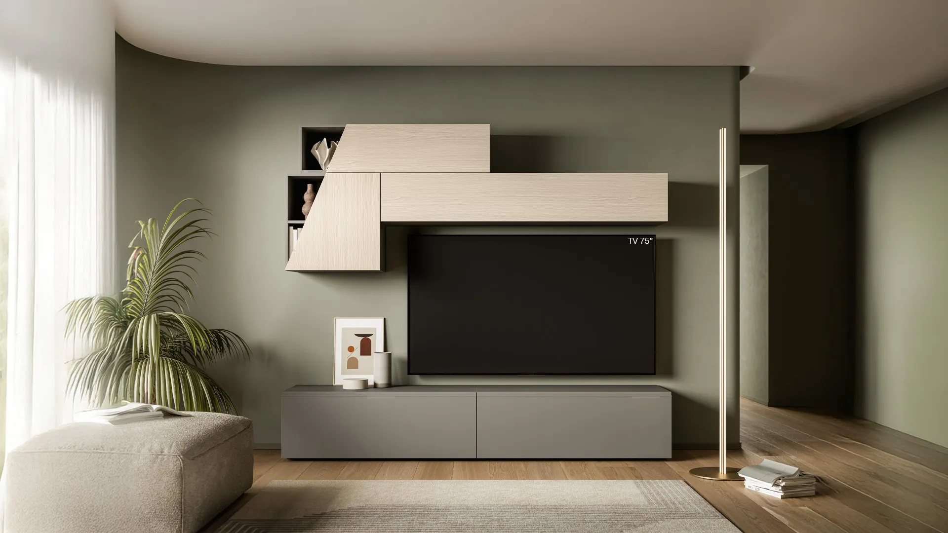 Se vuoi ultimare un living pratico e dinamico dalle linee moderne, ti offriamo la parete attrezzata Pratico PTG428 SantaLucia.