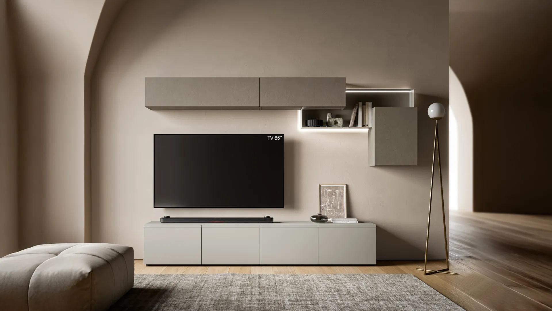 Clicca e scopri di più sulla parete attrezzata Pratico PTG431 dell'azienda SantaLucia: è la soluzione dalle linee moderne ideale per te.