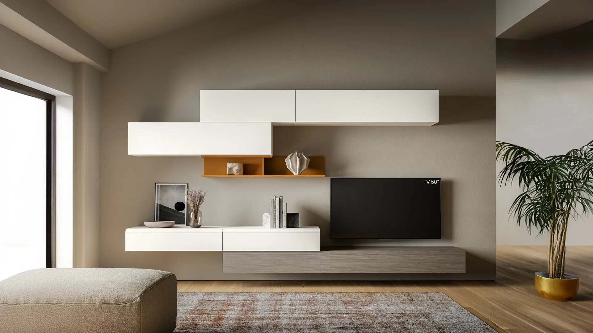 Vuoi ammobiliare un living pratico e dinamico? Ti offriamo la parete attrezzata Pratico PTG439 SantaLucia dalle linee decise moderne.