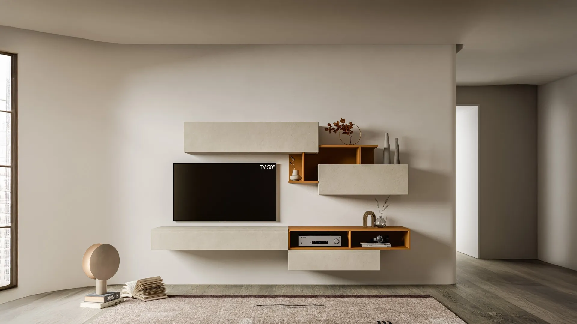 Vuoi allestire un living dinamico e operativo? Ti presentiamo la parete attrezzata Pratico PTG447 SantaLucia dalle forme decise moderne.