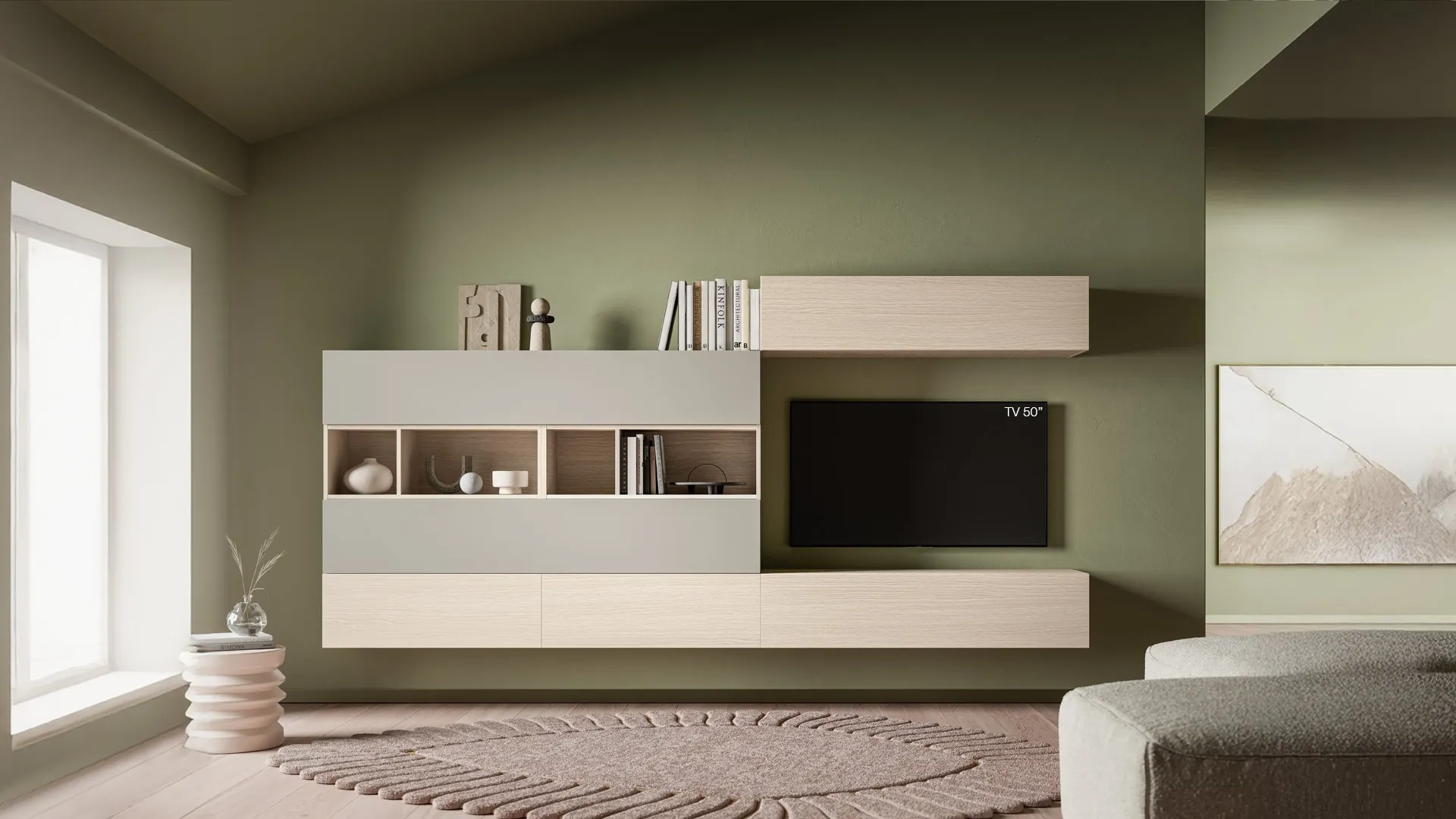 Se desideri ultimare un living operativo e pratico dalle linee moderne, ecco a te la parete attrezzata Pratico PTG449 SantaLucia.