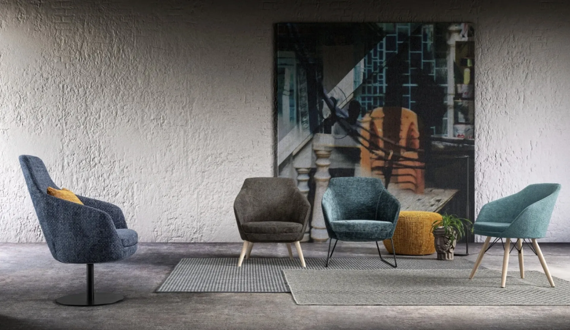 Se vuoi una poltroncina per stanze moderne, clicca e leggi di più sul modello Kora in tessuto del marchio Samoa.