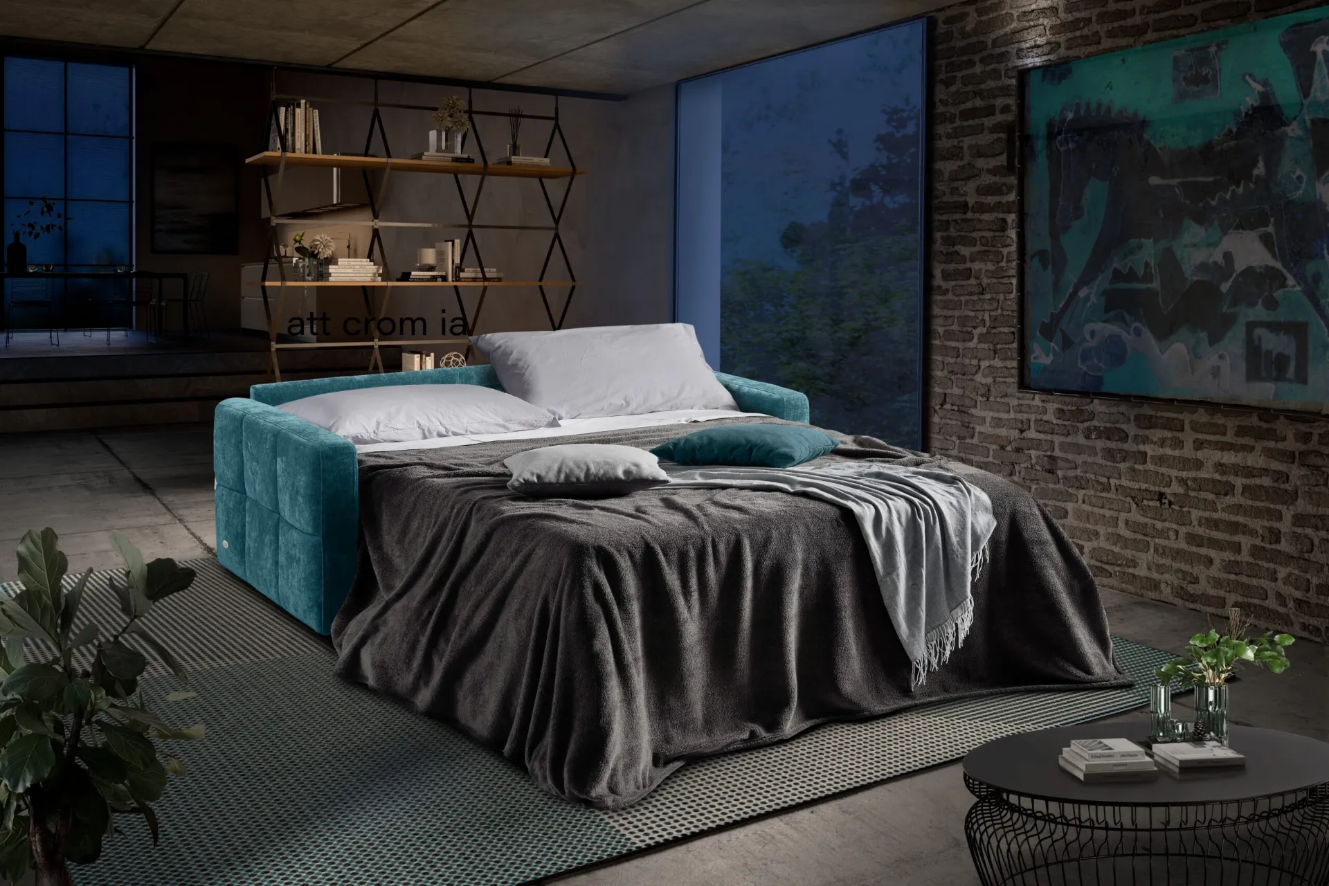 Se desideri divani per salotti moderni, clicca e leggi di più sul modello Kubik in tessuto dell'azienda Il Benessere.