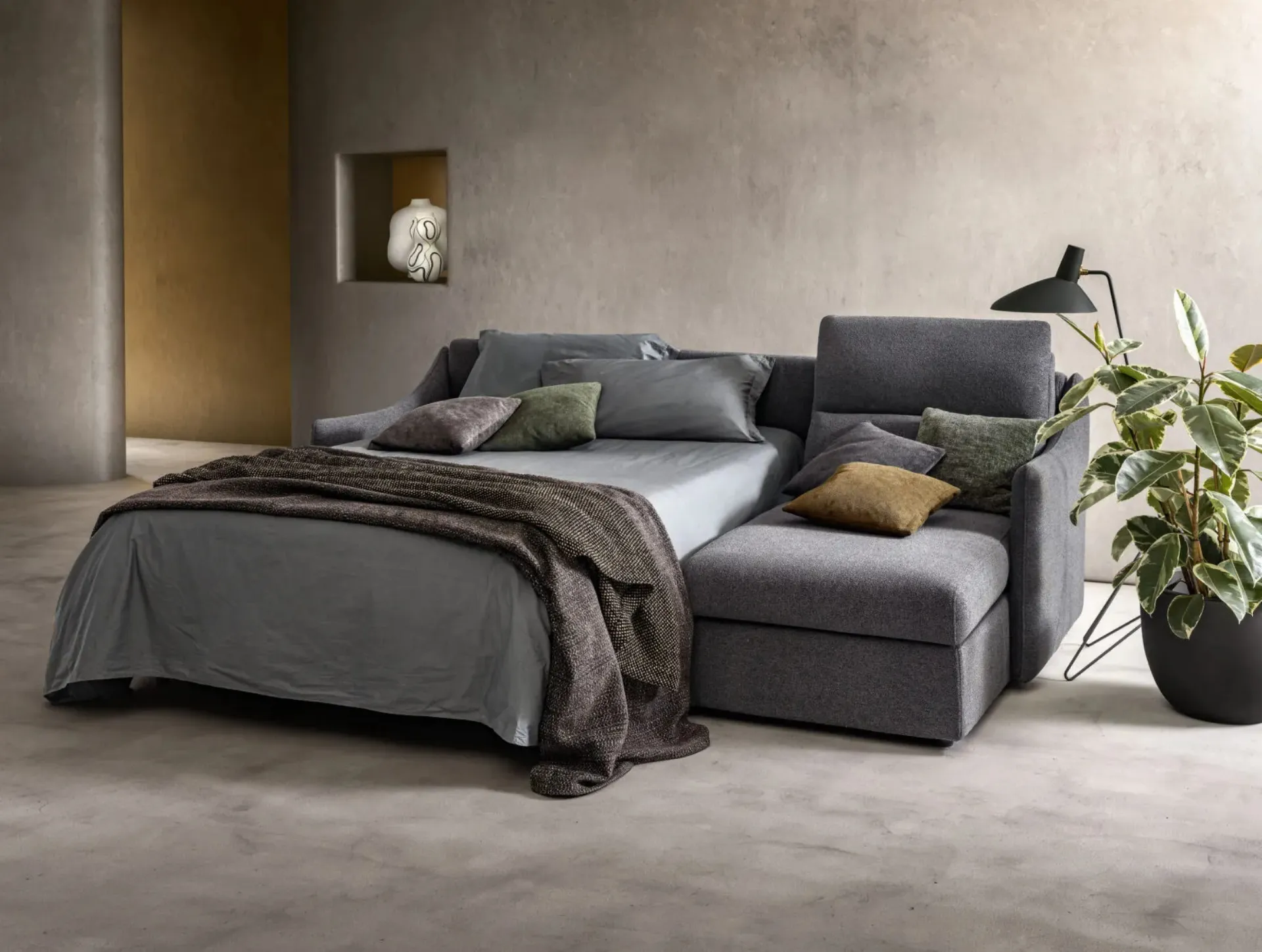 Salotti e divani con letto Samoa: ti offriamo il modello Logan in tessuto per completare la zona giorno.