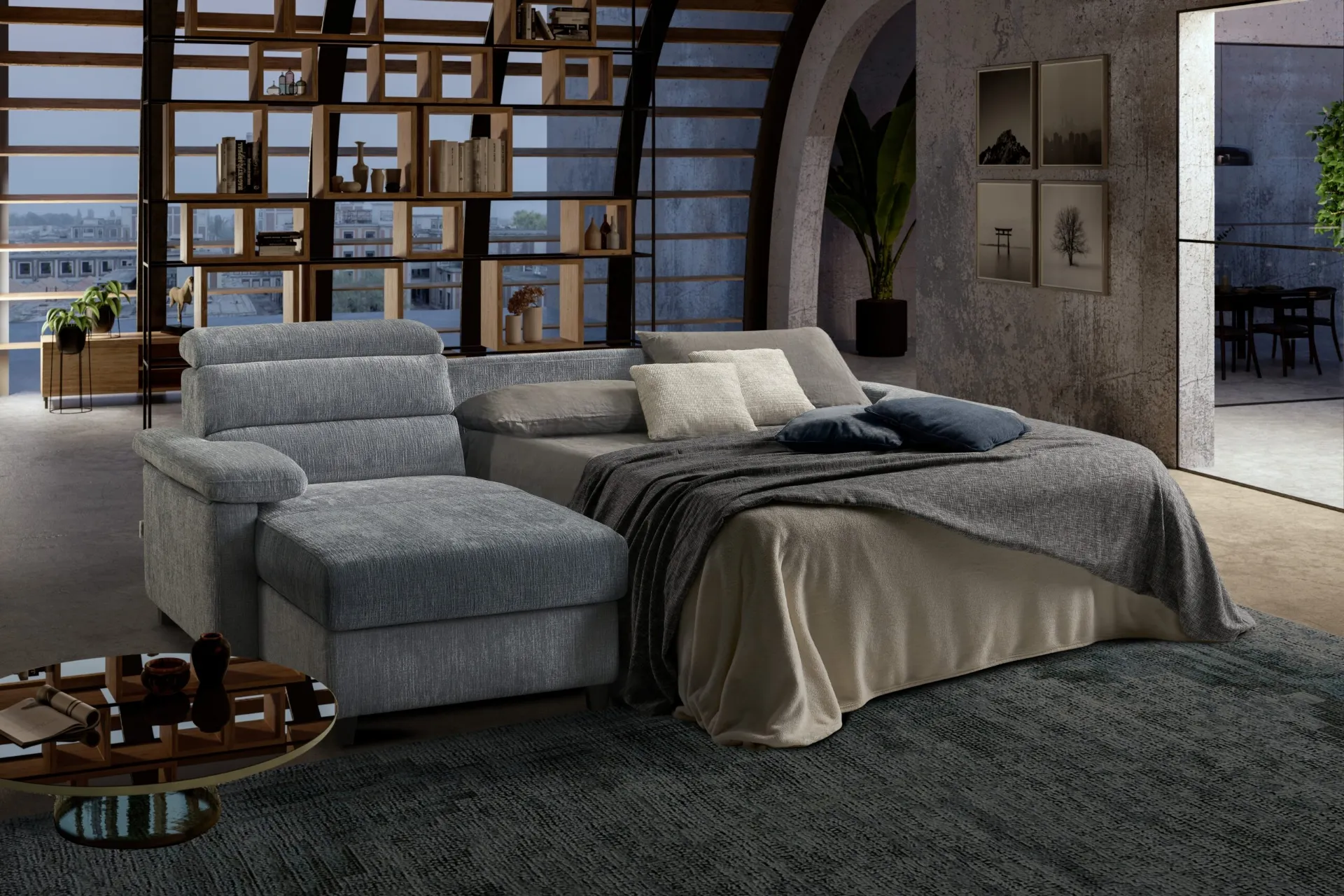 Se vuoi imbottiti con letto come il modello in foto, connotato dai volumi che invitano a goderti i tuoi momenti di relax. La serie di divani dell'azienda in questione presenta molteplici soluzioni originali per personalizzare il living all'insegna di praticità, comfort e stile. Divano Letto con penisola Pablo de Il Benessere: ricrea uno spazio accogliente e confortevole in spazi moderni dall'estetica raffinata. I nostri Salotti vengono progettati per essere abbinati a elementi accessori di ogni genere, come tavolini, abat jour e piantane o in combinazione con ulteriori divani in tessuto.
